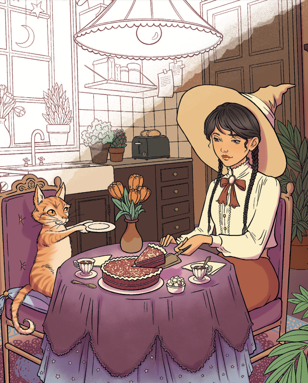 1. Magia cotidiana. Colorea: Fantasía cosy. Relájate coloreando oficinas de correos con lechuzas, libros de hechizos, gatos alados y mucho más. Un libro ideal para los fans de dragones, mazmorras y el placer de una buena taza de té.